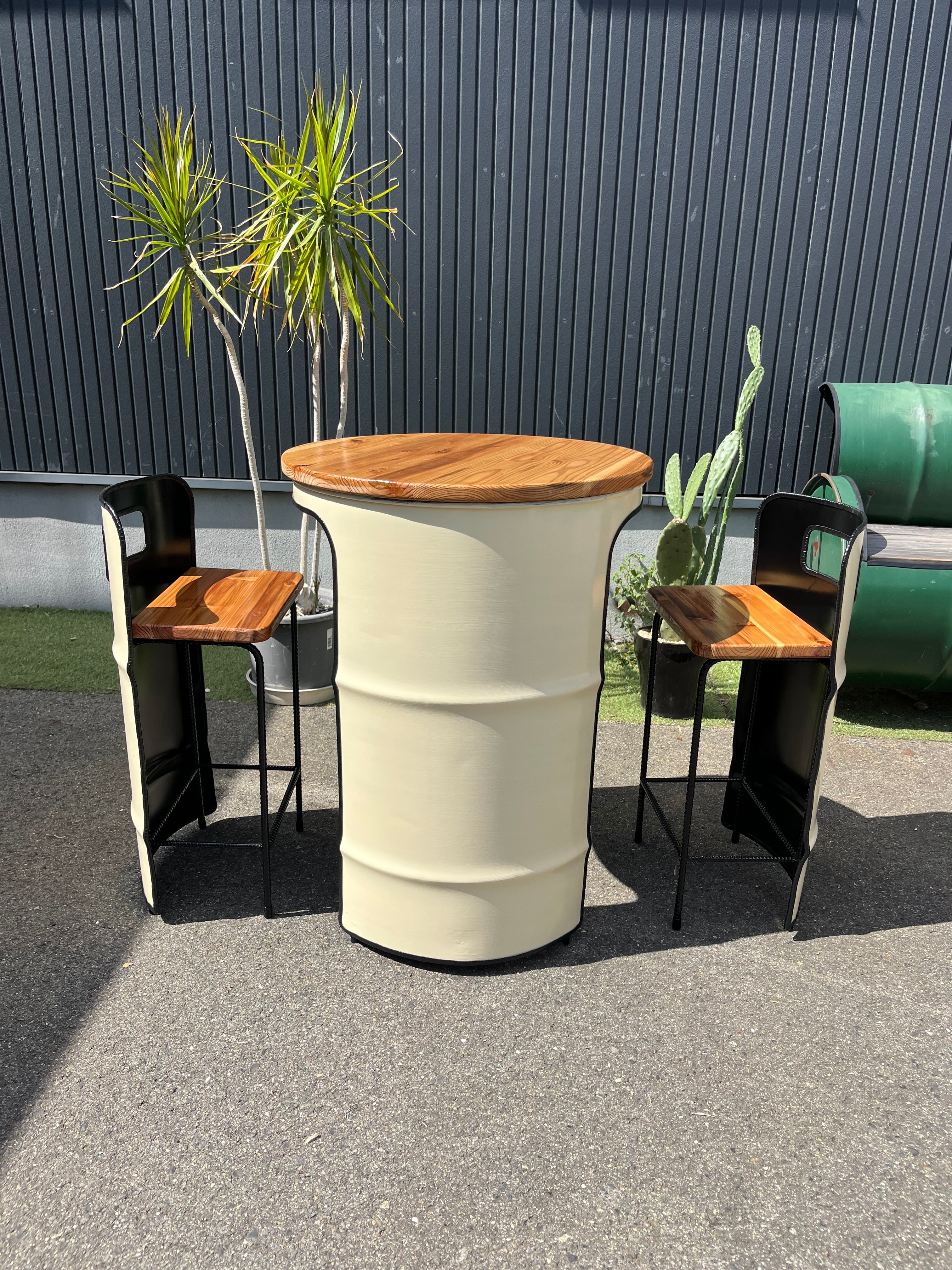 ドラム缶を無垢材でリメイクし、こだわりのデザインに仕上げた「ドラム缶リメイクテーブル 無垢材TYPE」です。どんな空間にもマッチするおしゃれなインテリアアイテムとして、あなたのお部屋やお店の雰囲気を劇的に変化させることができます♪