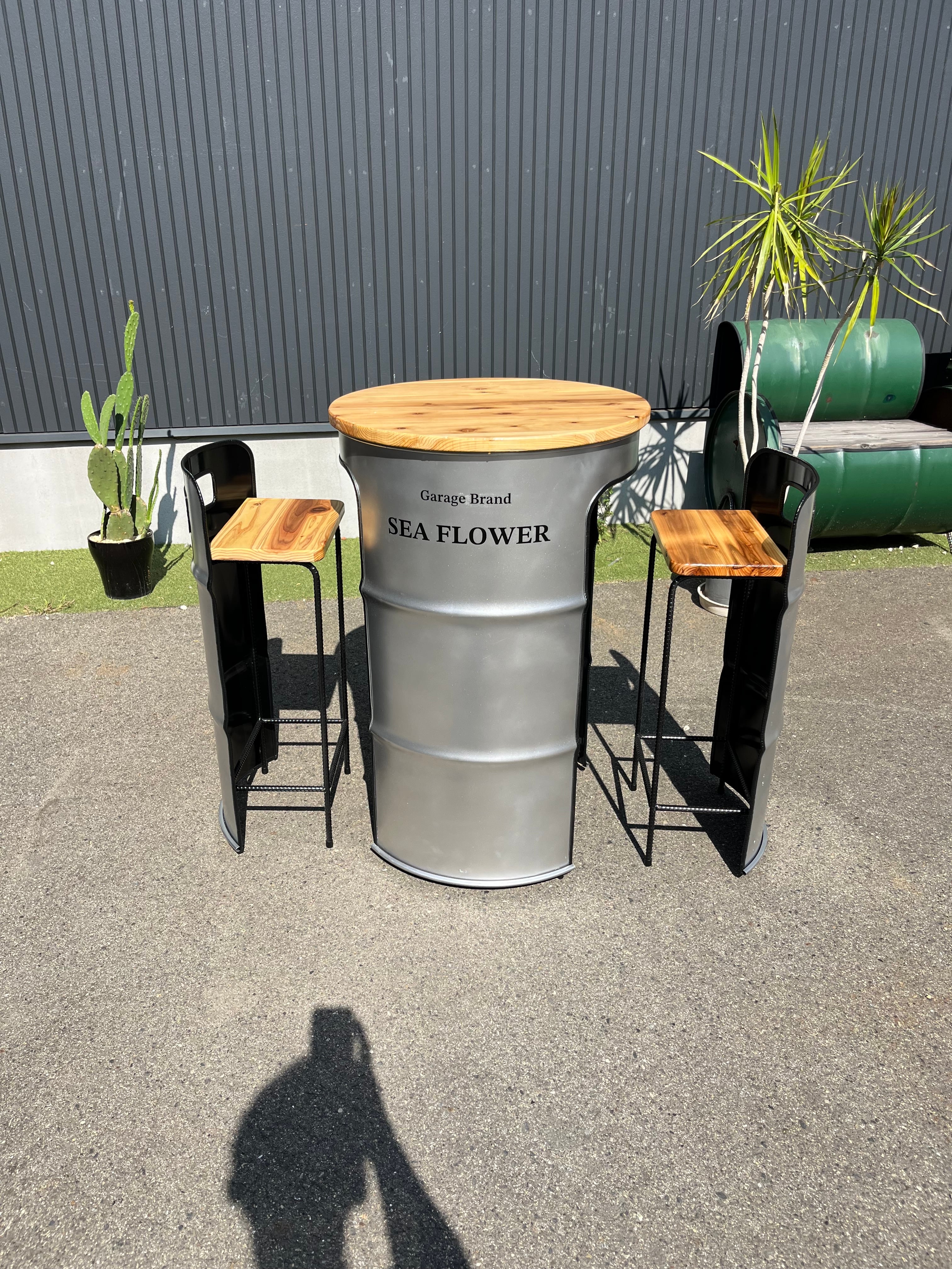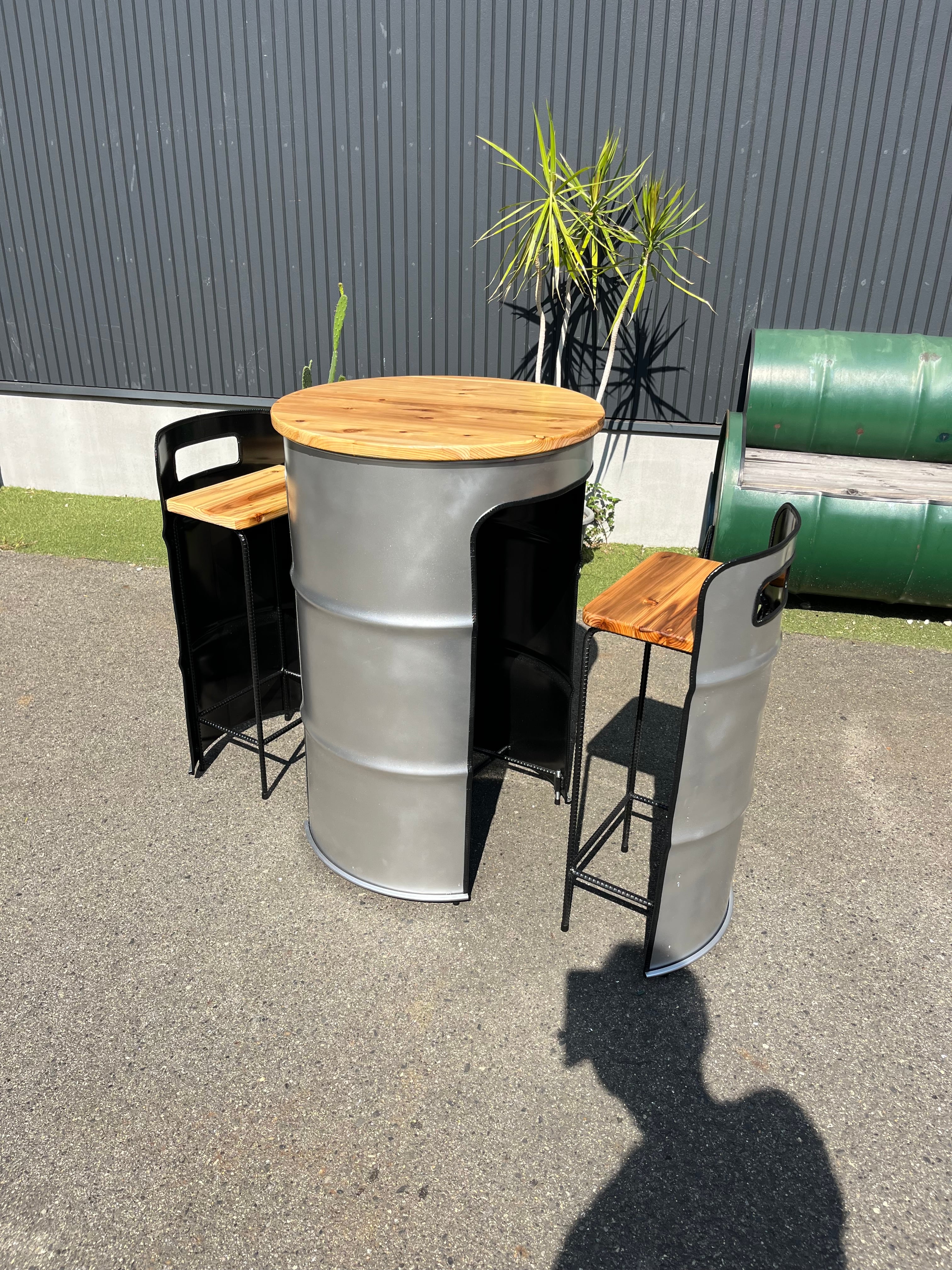 ドラム缶リメイクテーブルセット 無垢材TYPE