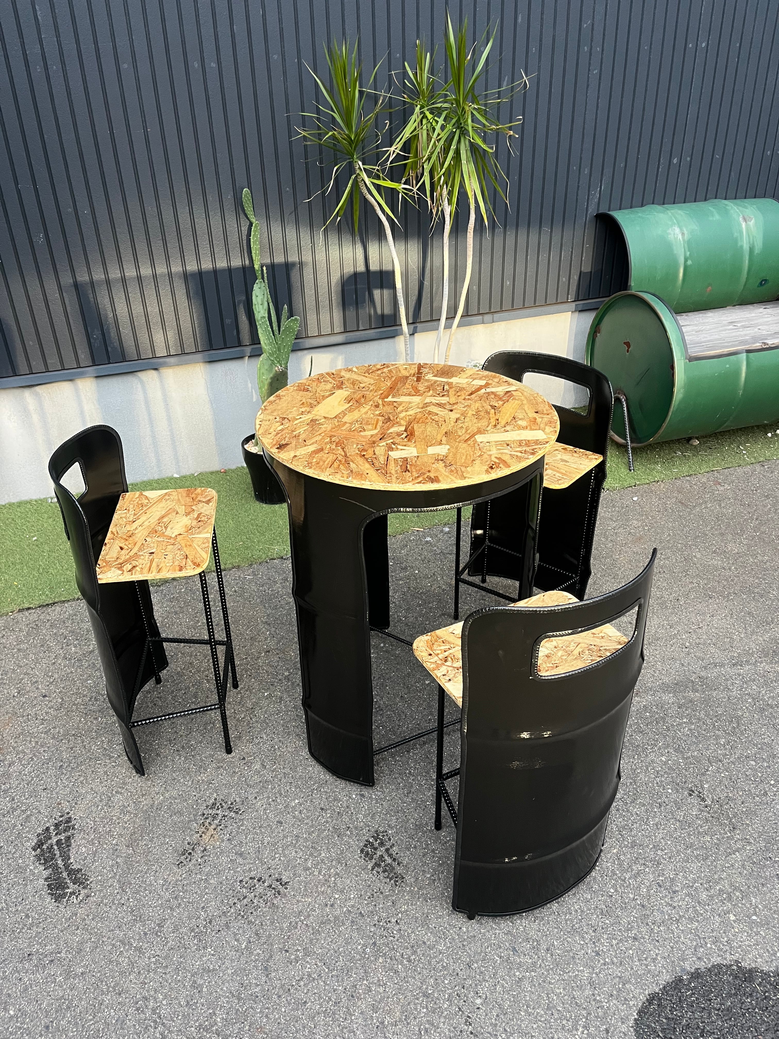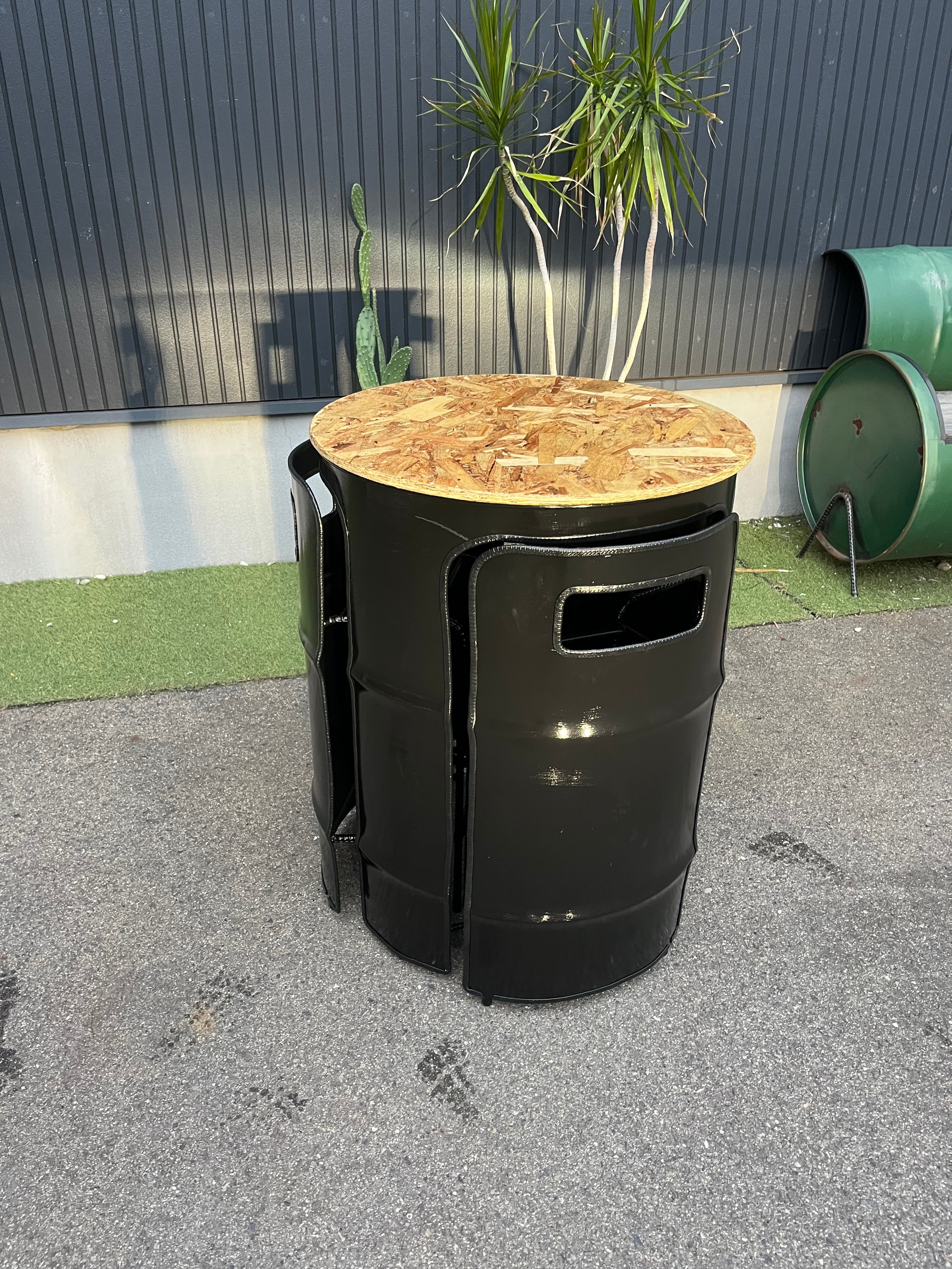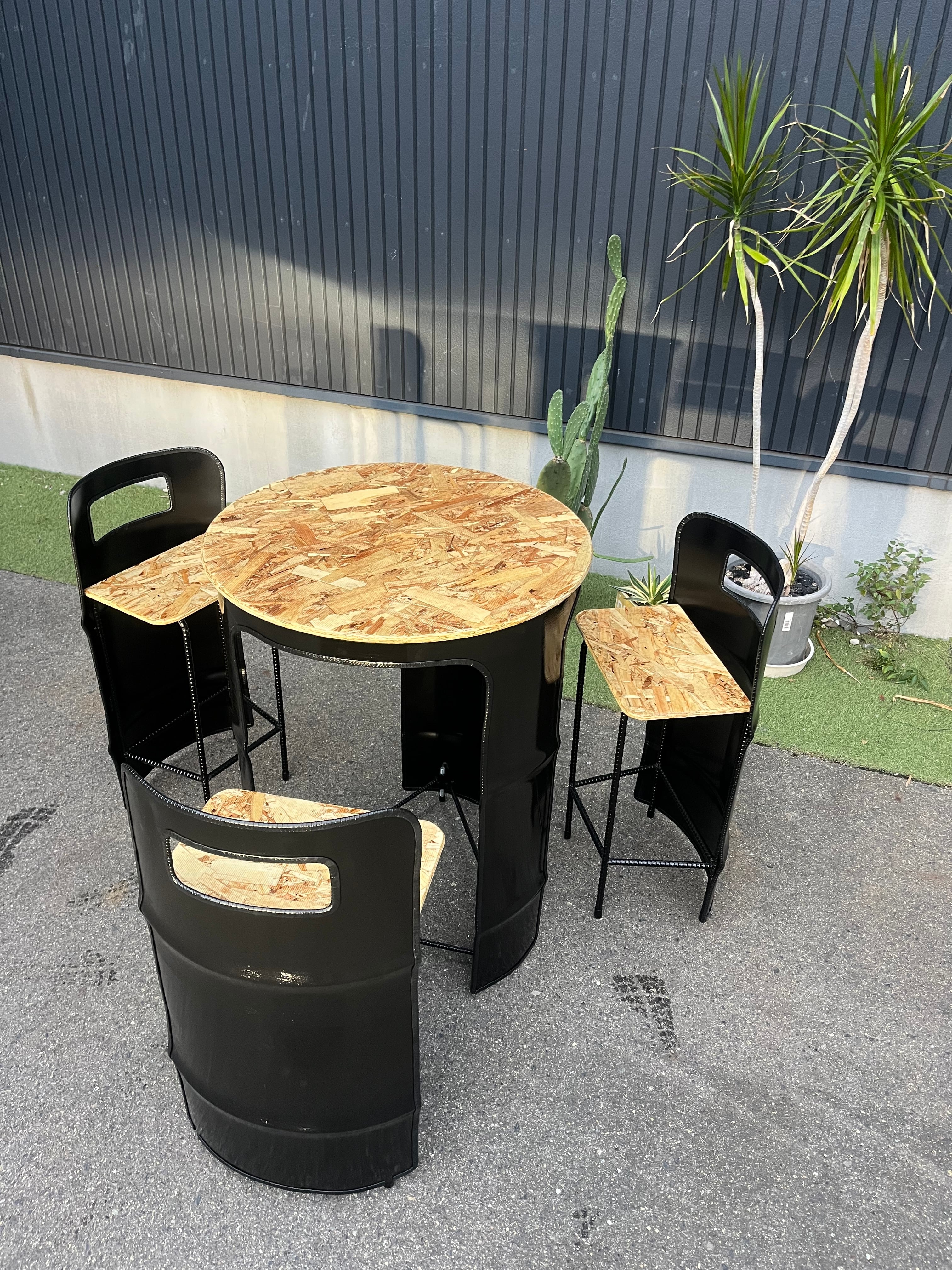 ドラム缶をリメイクして作り上げた「ドラム缶リメイクテーブル 三脚TYPE」です!個性的でスタイリッシュなデザインが、あなたの空間に新たな魅力をプラスします♪